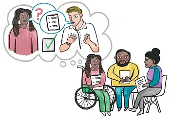 Plan activities and group work to give people space to ask questions and different ways share their ideas. Activities involving stories, art or role-plays can be helpful for making sure everyone can contribute in a way that works for them.
